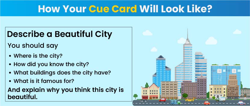 Before you start answering your cue card, make sure you know how the IELTS speaking portion works to avoid any type of mistakes. You need to follow a strategic approach while speaking your answers. When you get the cue card, you’ll have a minute to think about it. The cue card does not come with an option to switch, therefore, put your mind on it immediately. You will be given a pen and paper to write down your thoughts. To score well in the cue card round you need to demonstrate your ability to speak fluently. Further, by the end of IELTS speaking part 2the examiner will make a rough idea of your band score. Now, see below what points you need to cover in your cue card topic “Describe a beautiful city.”