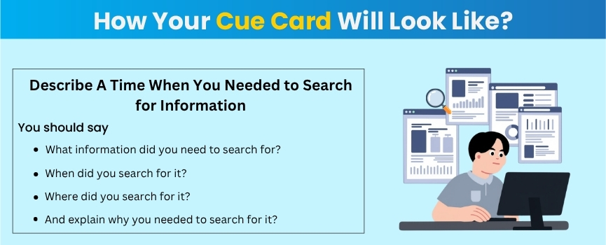 Here is the sample 3 for the cue card on “Describe A Time When You Needed to Search for Information”, helping you learn to formulate responses while practising.