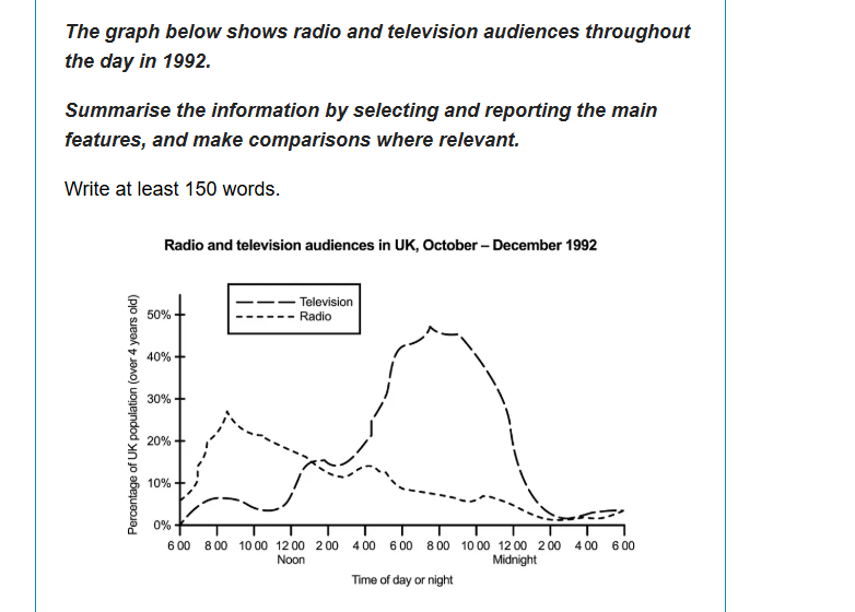 Introduction: The line graph illustrates the number of people tuning in to radio and television programs at various times throughout the day in the year 1992.