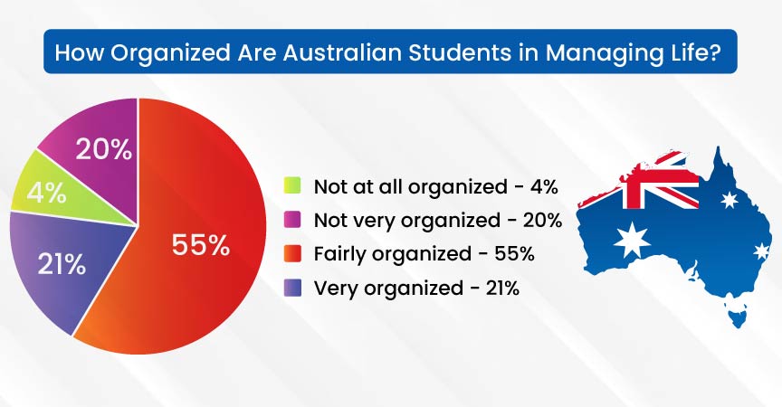 The diagram shows Australian students' answers to the question, "How well do they call themselves organized when it comes to living alone, studying, and working part-time?"